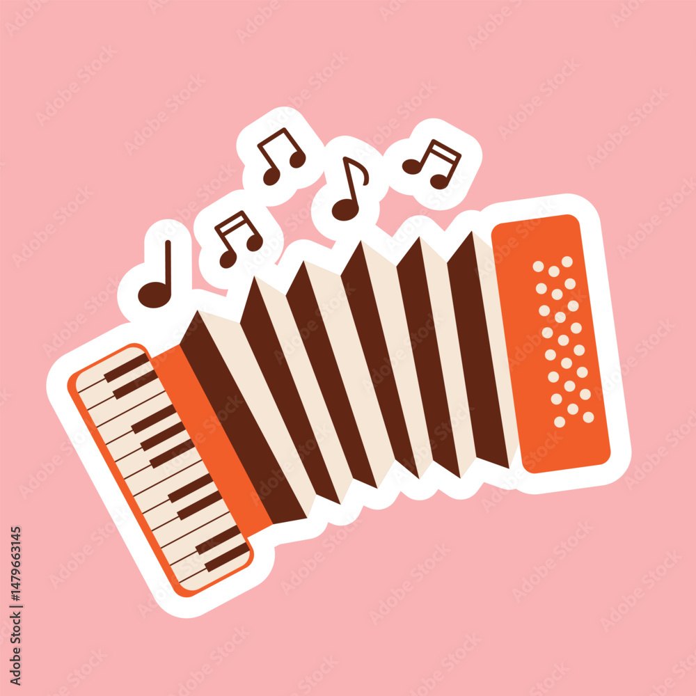 Foto Accordion sticker with music notes on isolated background