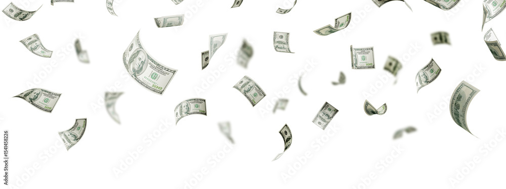 Foto Floating of 100 dollar bill on white