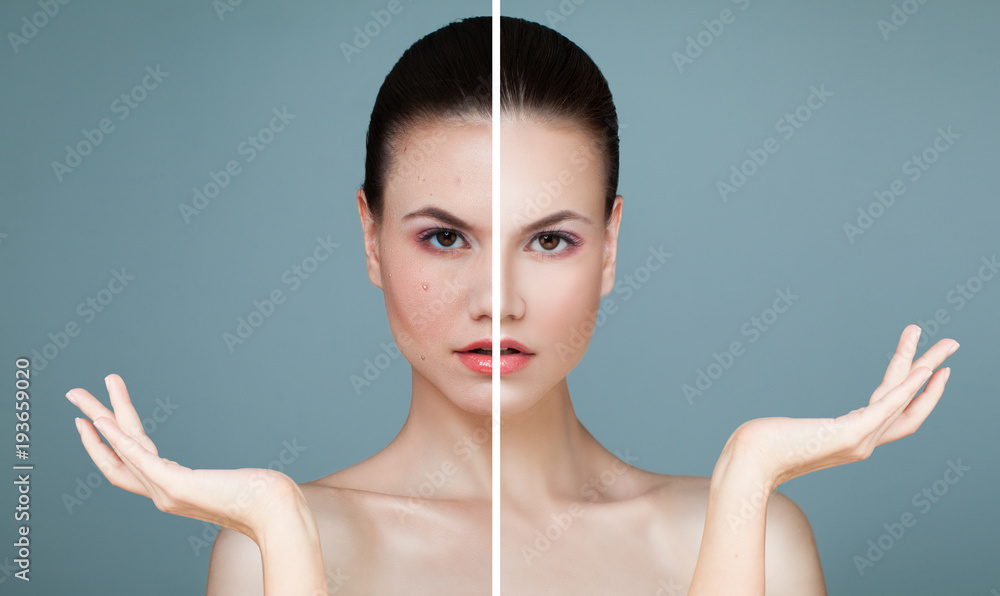 Foto Portrait of Young Woman Showing Empty Copy Space on the Open Hand for Cream Tube