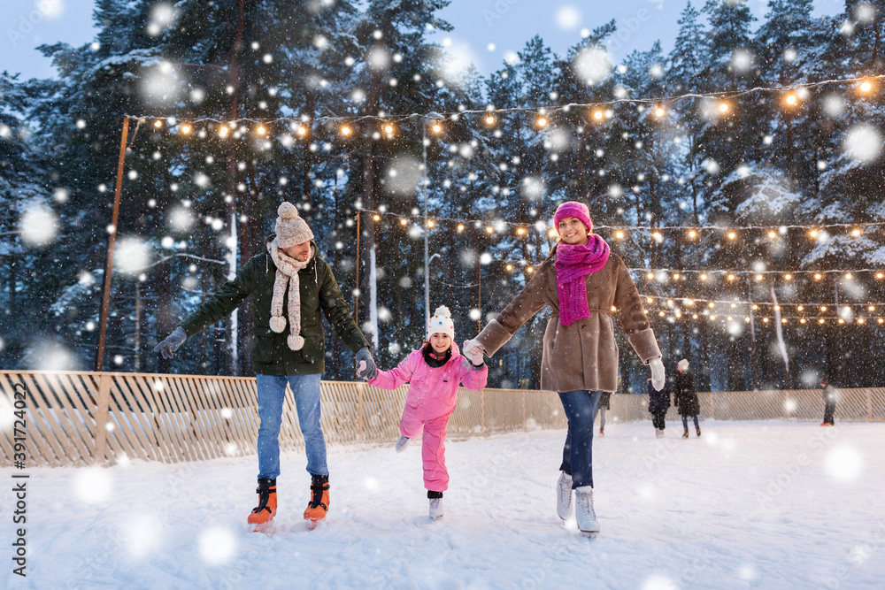 Foto christmas, family and leisure concept - happy mother, father and daughter at out