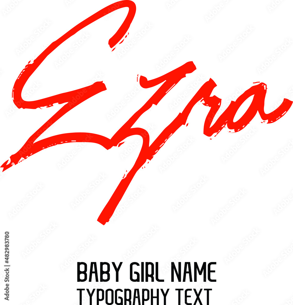 Foto Ezra Name for Cute Baby Girl in Stylish Lettering Cursive Dork Red Color Text C