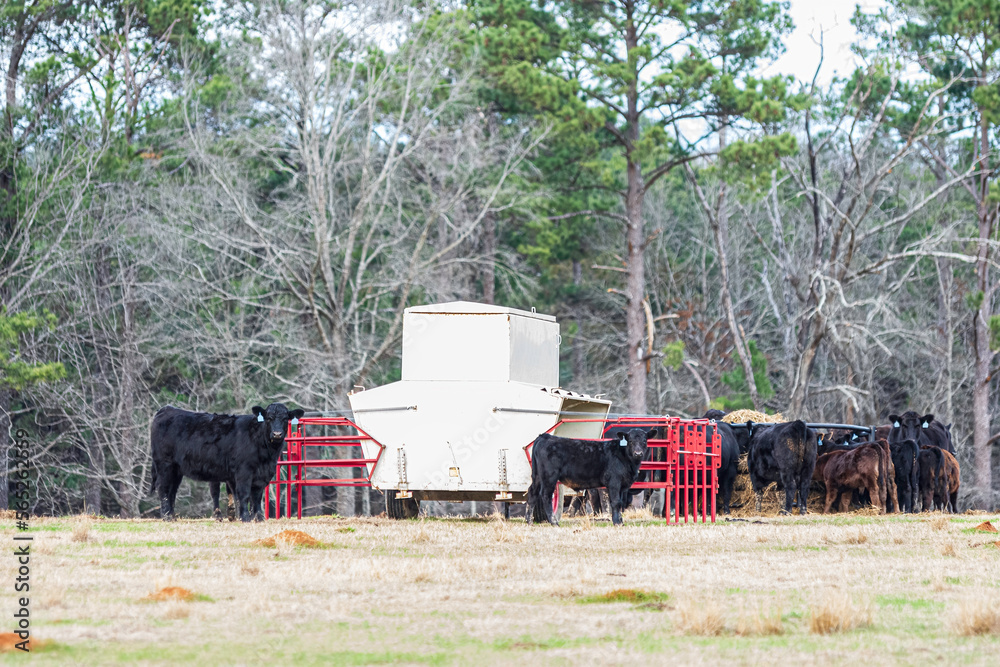 Foto Cow and calf standing in front of creep feeder