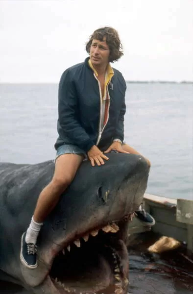 Sticker JAWS, 1975 réalisé par STEVEN SPIELBERG Sur le plateau, le réalisateur, Steven Spielberg