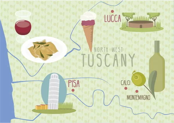Schilderij op canvas Map of Lucca and Pisa, Tuscany, Italy