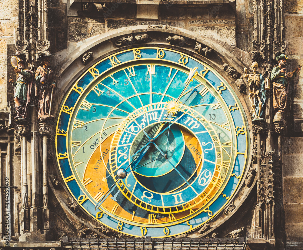 Foto Astronomical Clock In Prague, Czech Republic. Close Up Photo