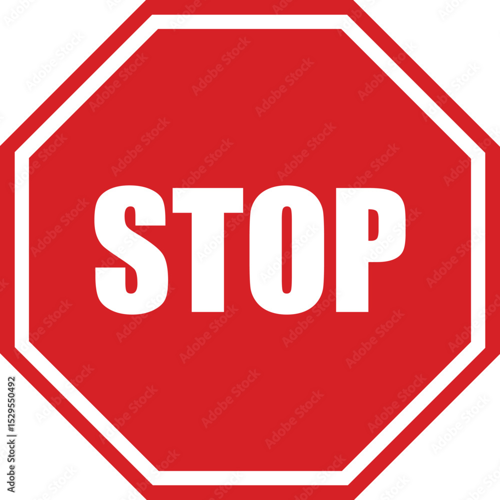 Schilderij op canvas Red Stop Sign Vector – Octagonal Traffic Warning Symbol with Bold Text