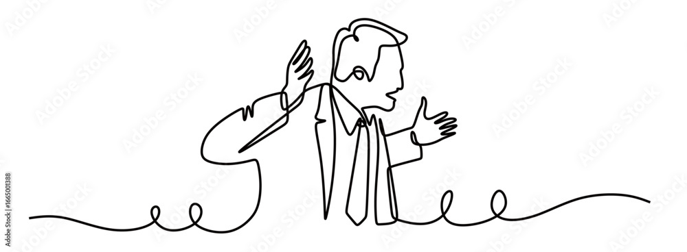 Schilderij op canvas continuous line art of a man in a work suit being depressed and angry