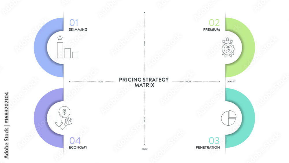 Schilderij op canvas Pricing strategy matrix infographic diagram template with icon vector for presentation has skimming, premium, penetration and economy