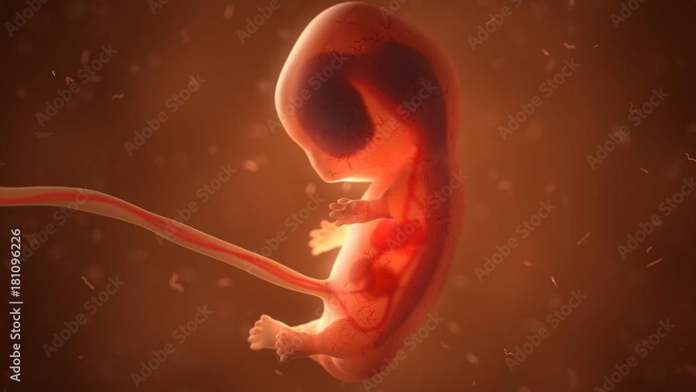 Schilderij op canvas Human fetus with internal organs, 3d illustration