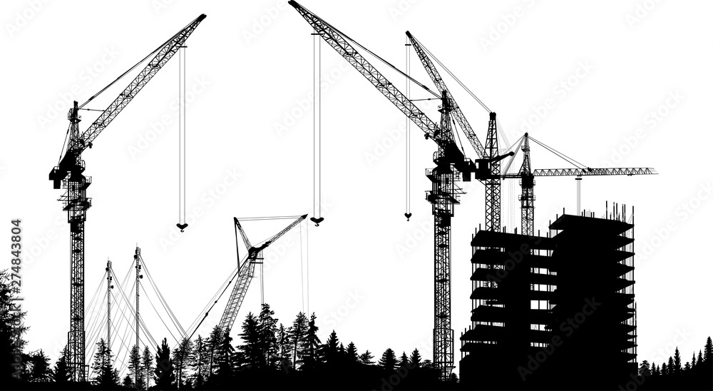 Schilderij op canvas large black cranes above forest