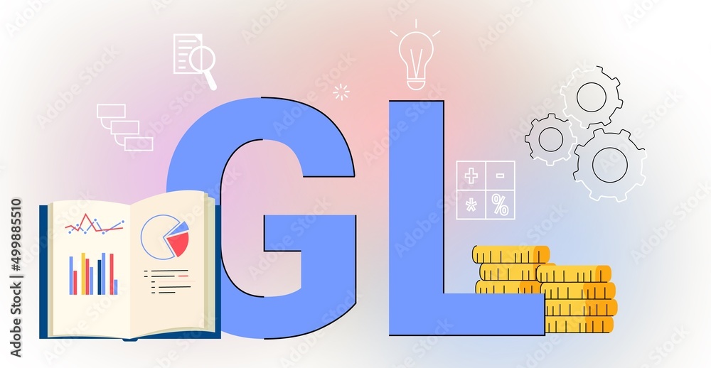 Schilderij op canvas GL General Ledger Accounting general ledger Expenses vector illustration Bookkee