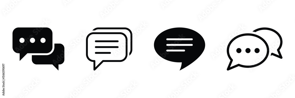 Schilderij op canvas Chat bubble icon set solid and outline style