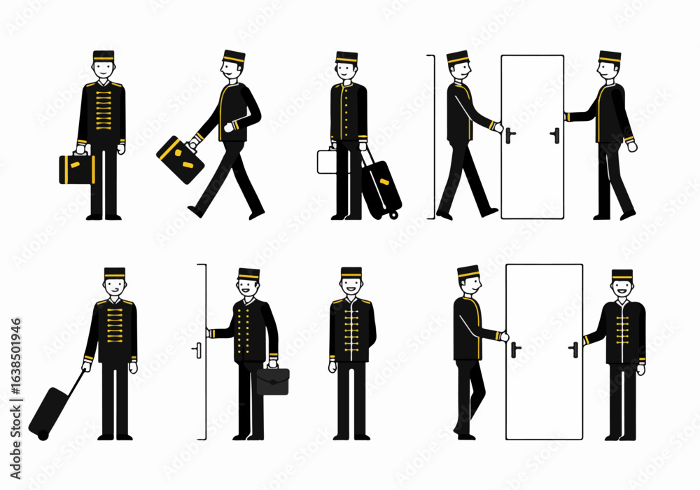 Foto Collection of Bellhop and Hotel Porter Illustrations, Demonstrating Hospitality Services and Luggage Assistance
