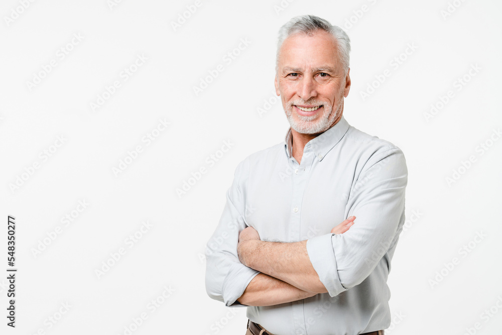 Foto Confident caucasian middle-aged senior businessman freelancer ceo grandfather te