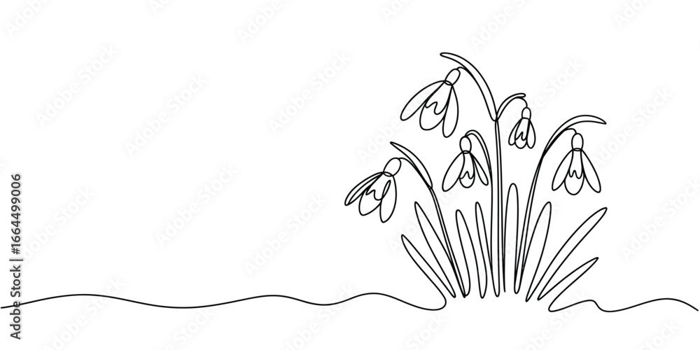 Foto Delicate snowdrop flowers in a simple line drawing style