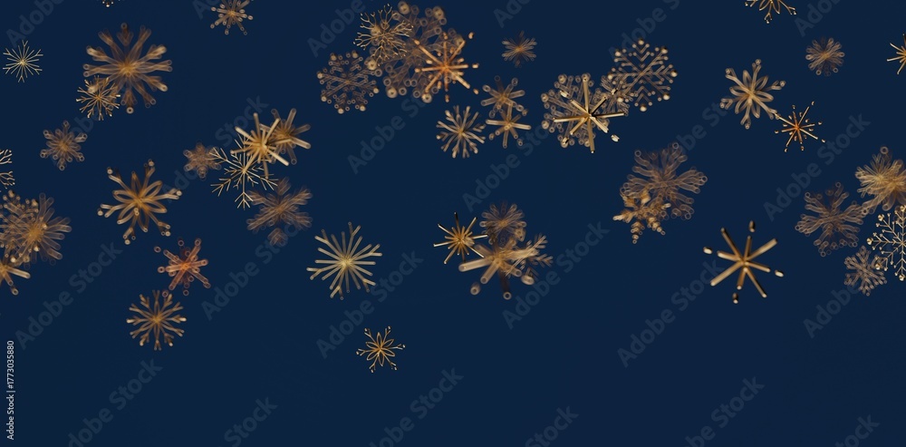 Behang Elegant image of gold snowflakes descending on a dark blue backdrop, perfect for