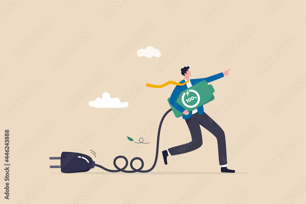 Behang Full recharge energize, motivation to success in work, productive and efficiency, aspiration or enthusiastic concept, motivated businessman carry fully charged battery ready to fight for success