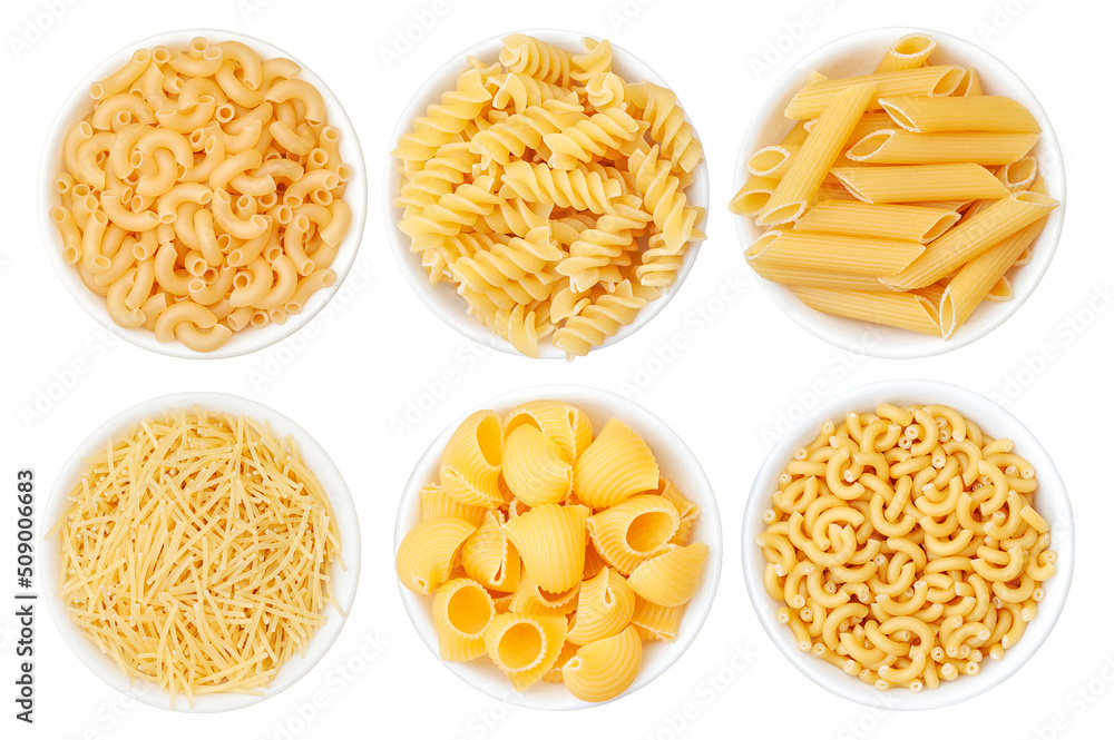 Behang Different types of pasta in a white cup on a white background