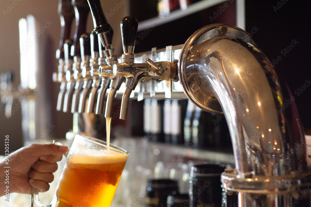 Behang canillas de cerveza artesanal sirviendo un vaso con espuma