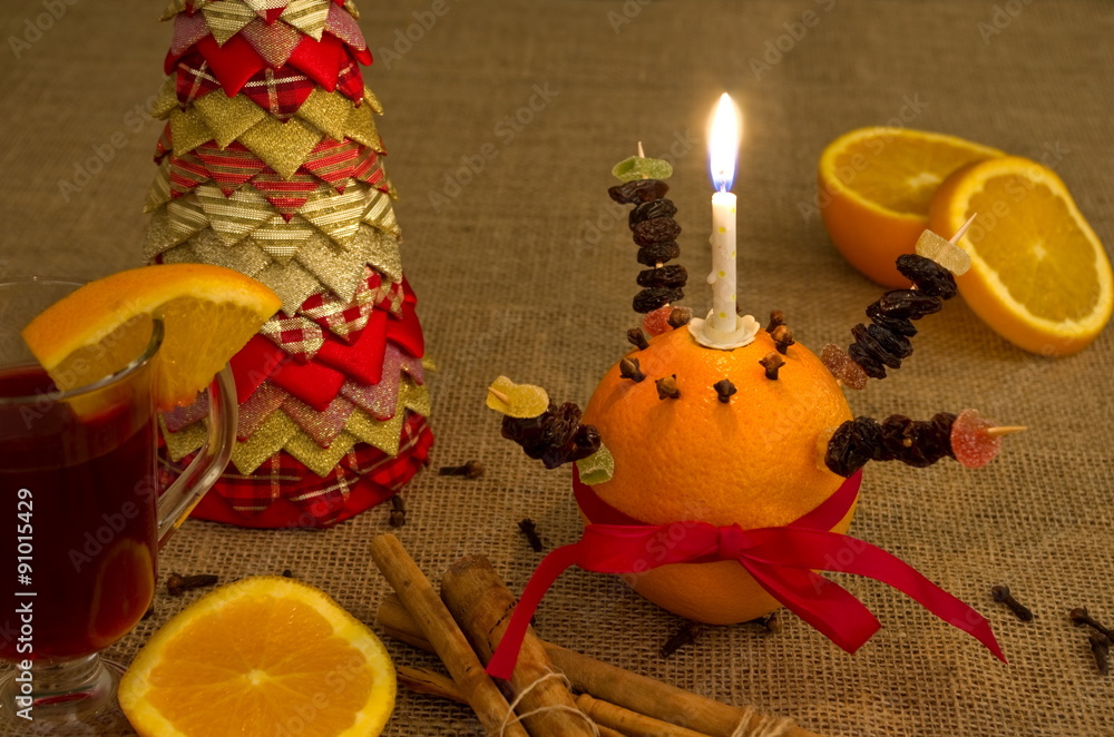 Behang A freshly made Christingle table display, related to advent, it originates in Germany from the C18th