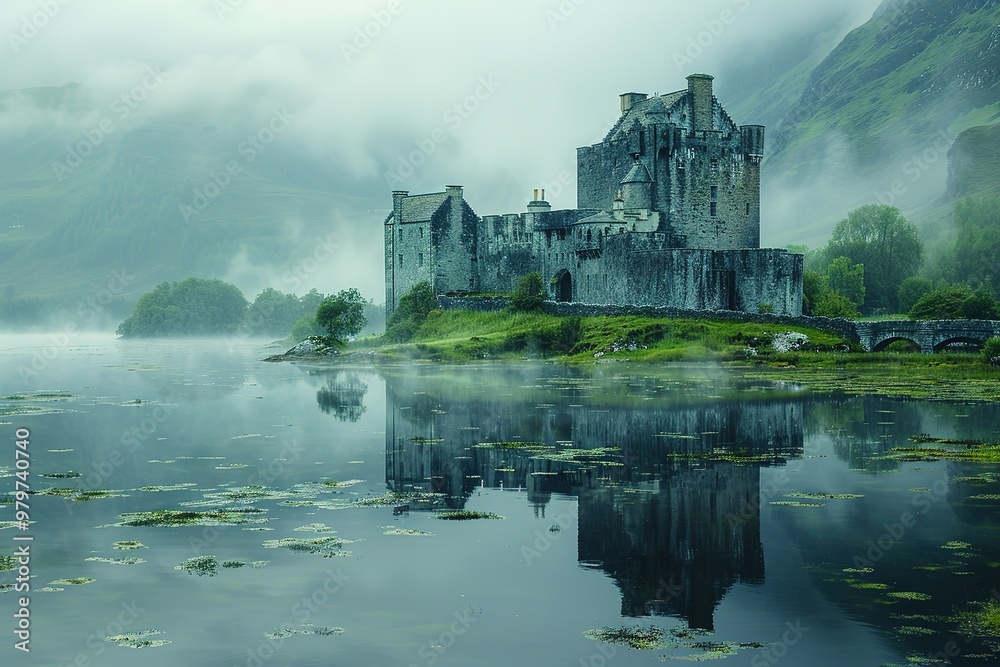 Behang A castle is reflected in the water