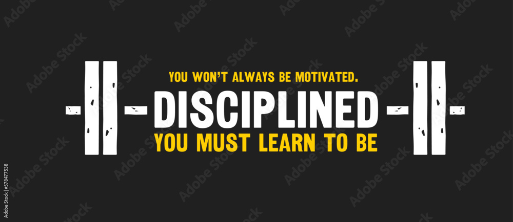 Schilderij op canvas Gym motivational quote about discipline with barbell