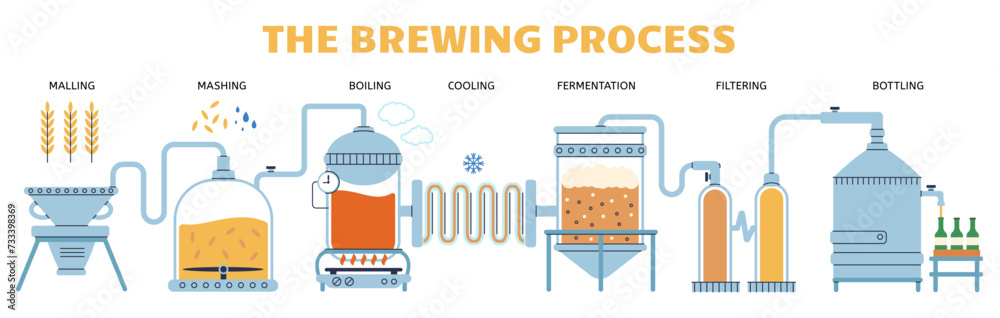 Schilderij op canvas Industrial beer brewing process