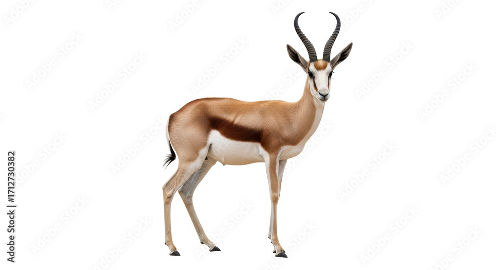 Foto Isolated springbok antelope standing in full body profile on a seamless backgrou