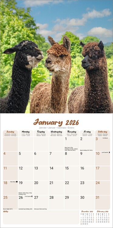 • Kalender Alpacas kan aan elke muur worden opgehangen