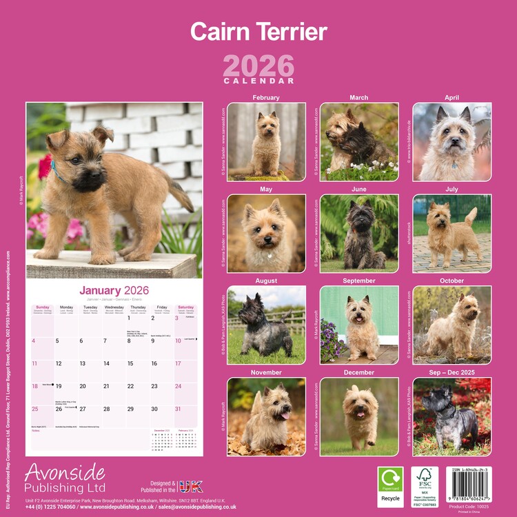 • Kalender Cairn Terrier kan aan elke muur worden opgehangen