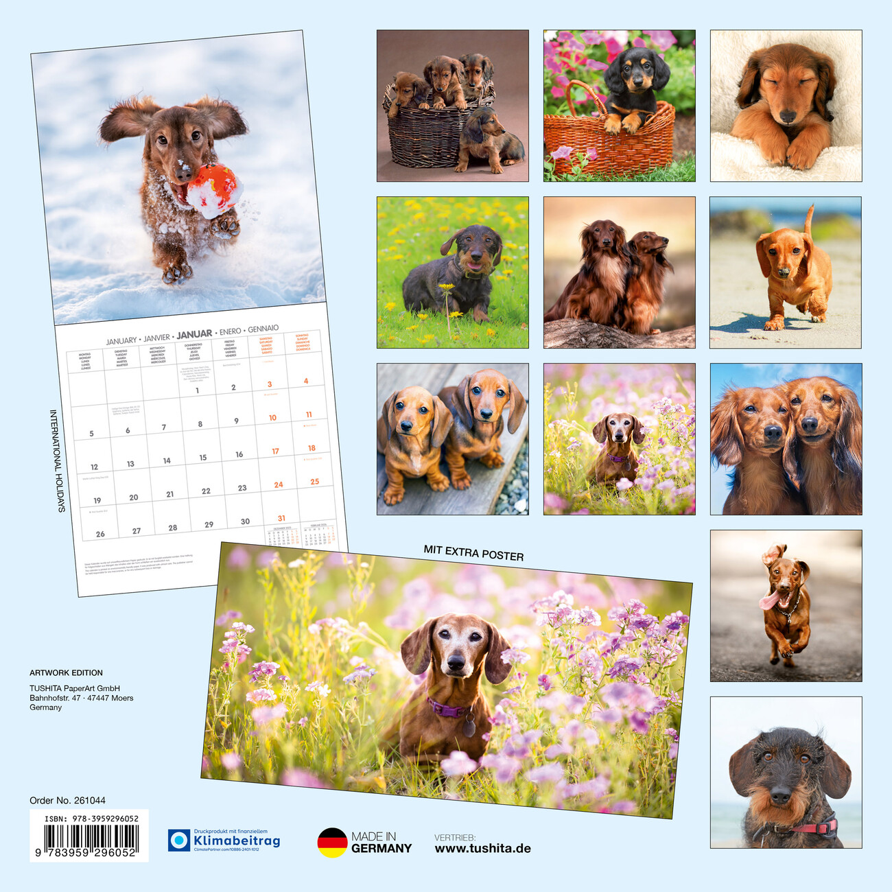 • Kalender Dachshund kan aan elke muur worden opgehangen