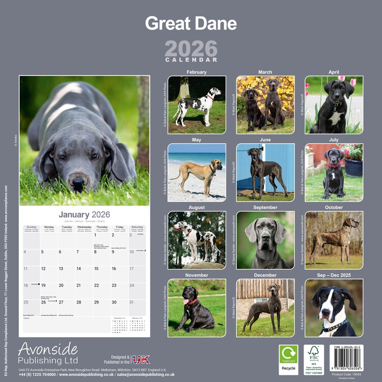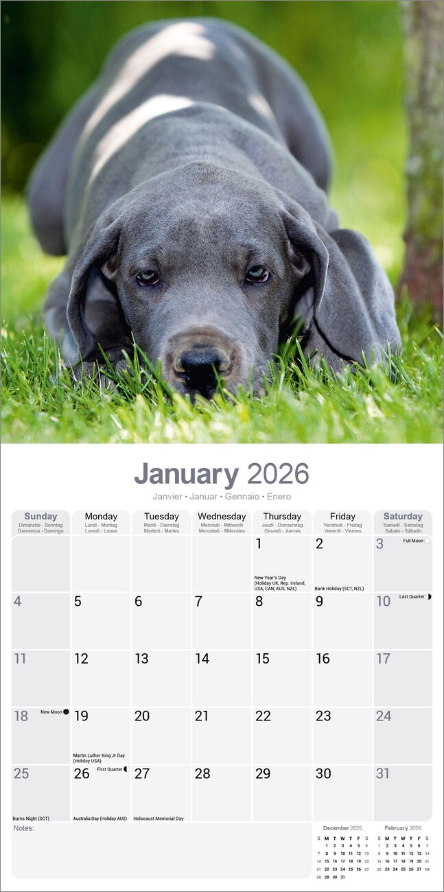 • Kalender Great Dane kan aan elke muur worden opgehangen