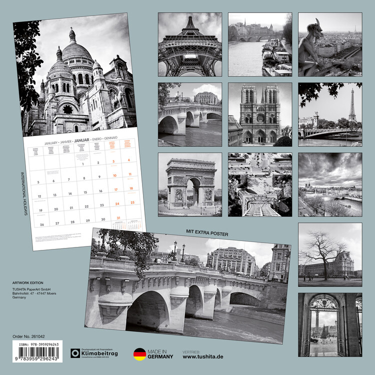 • Kalender Paris Retro kan aan elke muur worden opgehangen