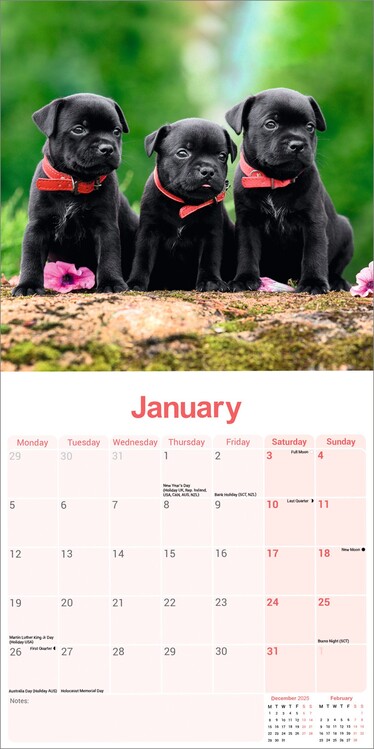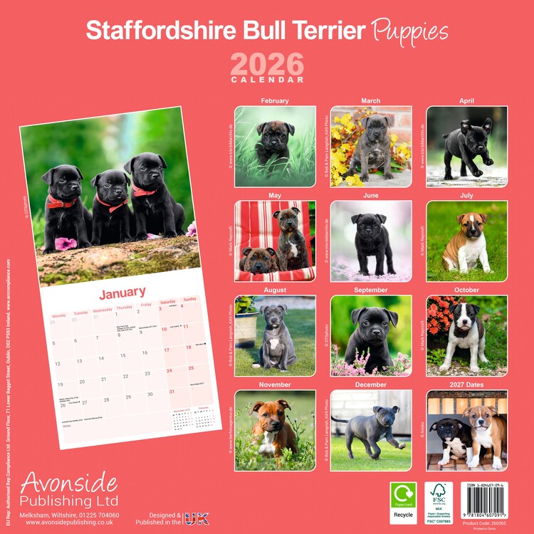 • Kalender Stafford Bull Terrier kan aan elke muur worden opgehangen