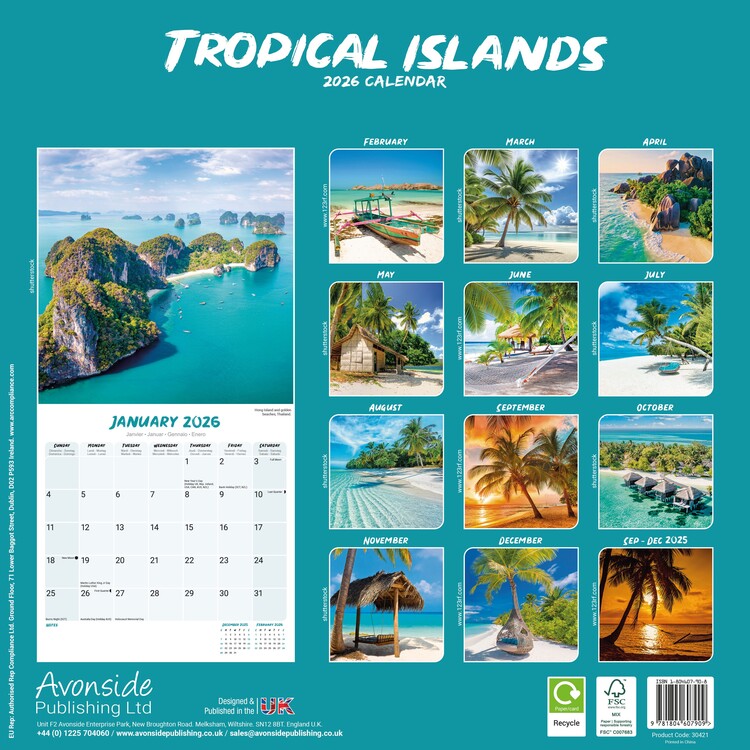 • Kalender Tropical Islands kan aan elke muur worden opgehangen