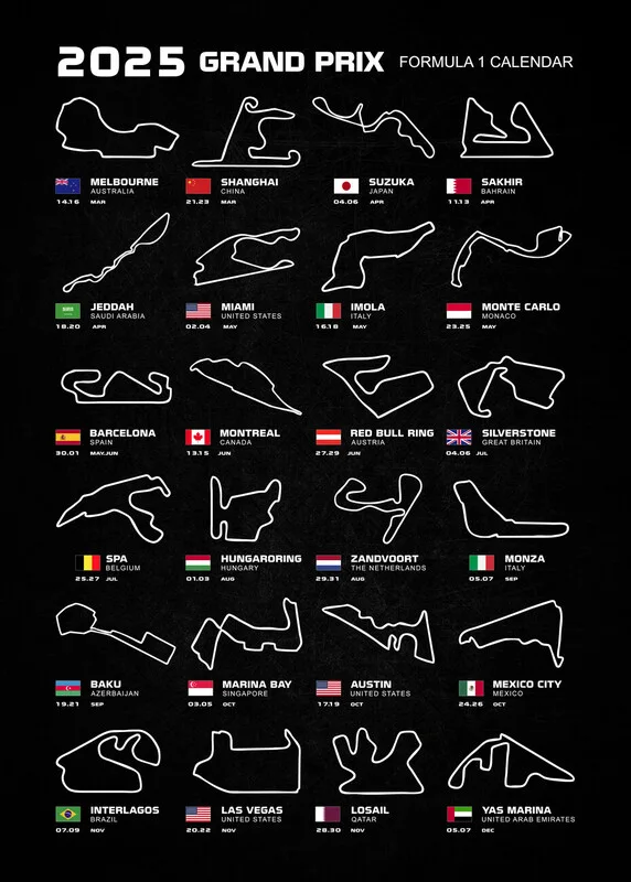 Schilderij op canvas Formula 1 Season Calendar 2025 II