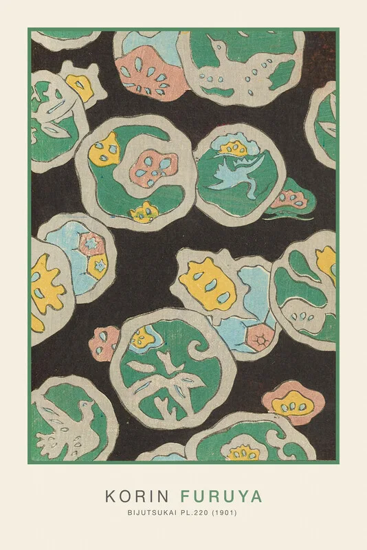 Sticker Japanese Pattern in Black & Green (Japandi) - Furuya Kōrin