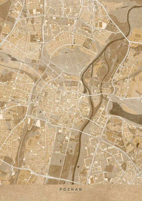 Schilderij op canvas Map of Poznan (Poland) in sepia vintage style