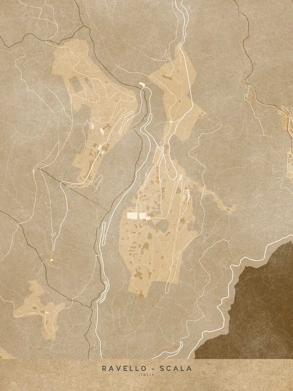 Poster Map of Ravello & Scala (Italy) in sepia vintage style