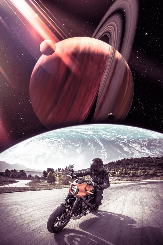Schilderij op canvas Motorcycles at the speed of Saturn's rings
