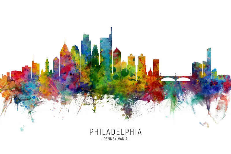 Poster Philadelphia Pennsylvania Skyline Cityscape Painting Watercolor