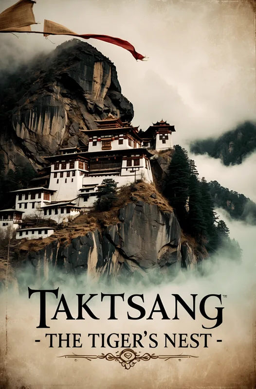 Sticker Tiger’s Nest Vintage Travel Poster – Mystical Beauty of Bhut