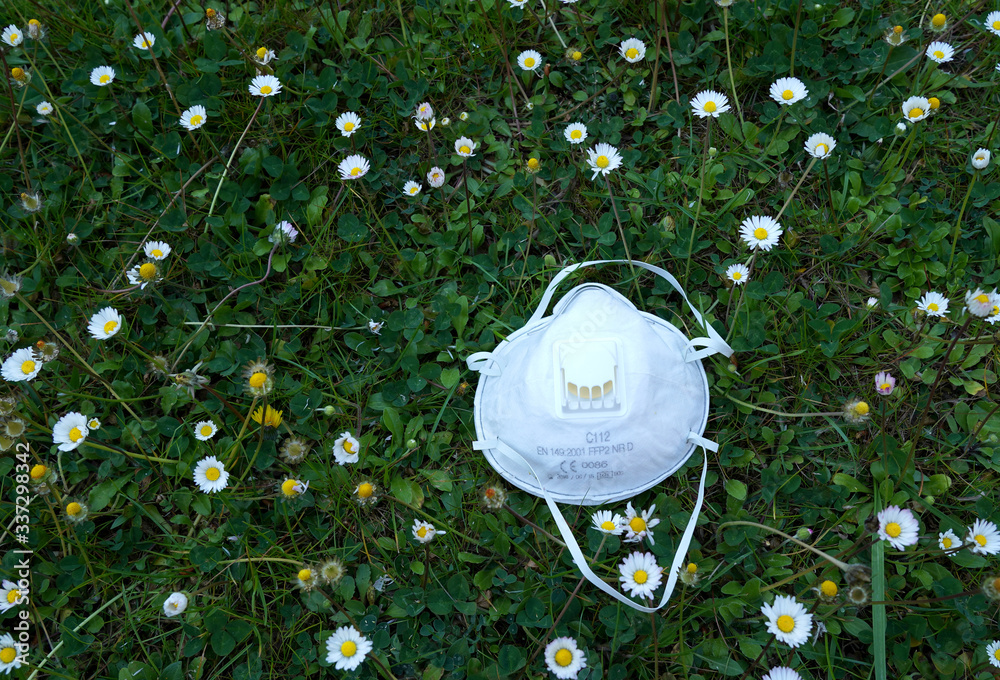 Foto Masque de protection covid19 dans un champs de pâquerettes pendant les vacances