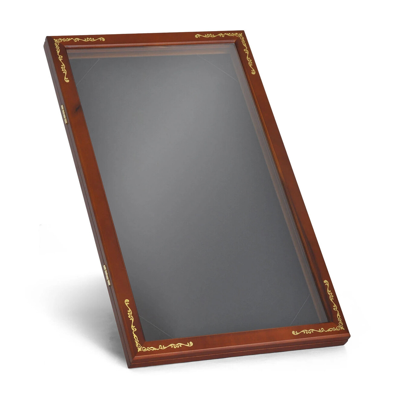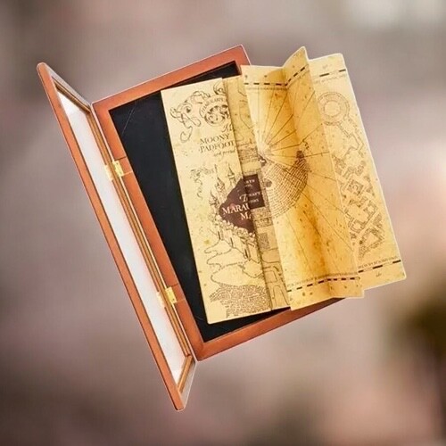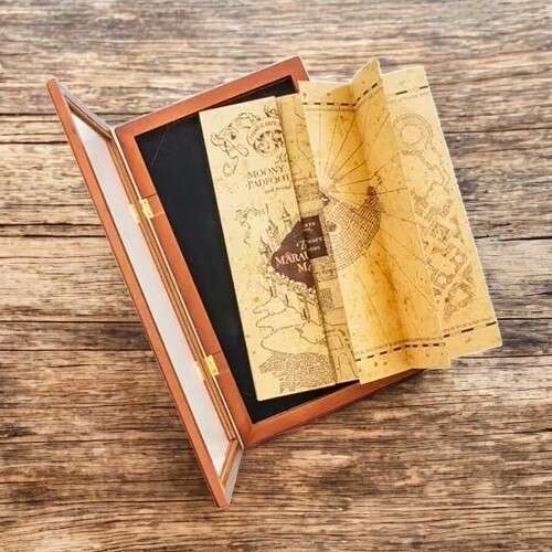 De houten kaarthouder Pobert's Map is een elegant verzamelobject met luxe gouden details, een magnetische sluiting en een opening met rits om de kaart veilig in op te bergen. De afmetingen van de vitrine zijn 53 × 34 × 9 cm.