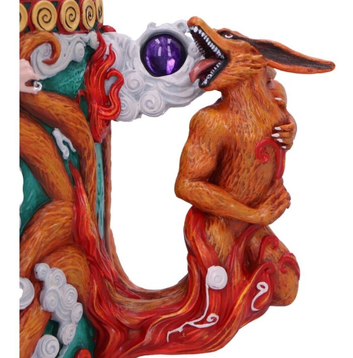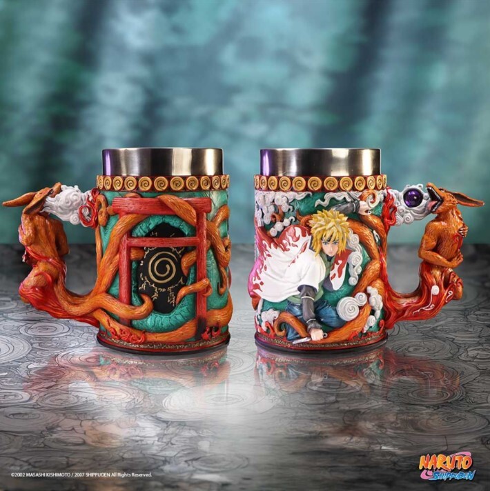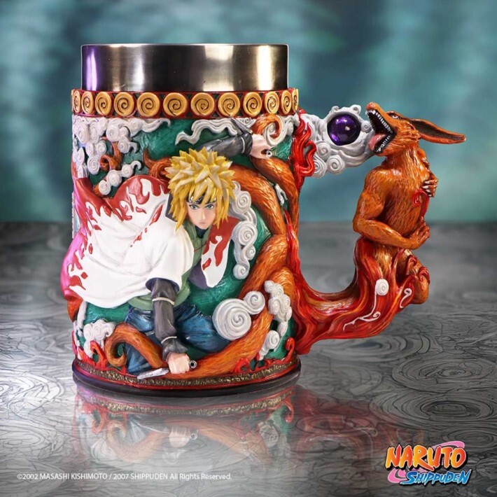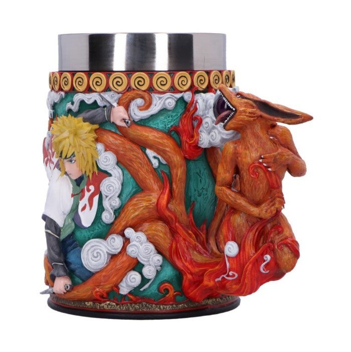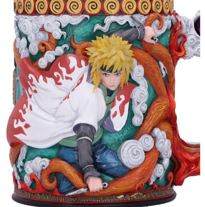 Het product heeft een ingewikkeld gebeeldhouwd ontwerp van Minato Namikaze, die zijn snelheid en kracht als leider laat zien. De pul toont Minato in al zijn glorie, met Kurama, de Negen Staarten, die zich om de achterkant wikkelt om het handvat te vormen. De pul is gemaakt van hoogwaardig hars en is zowel duurzaam als visueel opvallend, met handgeschilderde details zodat elke pul uniek is. De uitneembare roestvrijstalen binnenbeker maakt hem gemakkelijk schoon te maken en combineert vorm en functie.