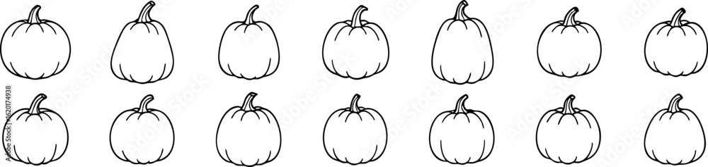 Schilderij op canvas Outline pumpkin icons in various shapes and styles, ideal for coloring pages, DI