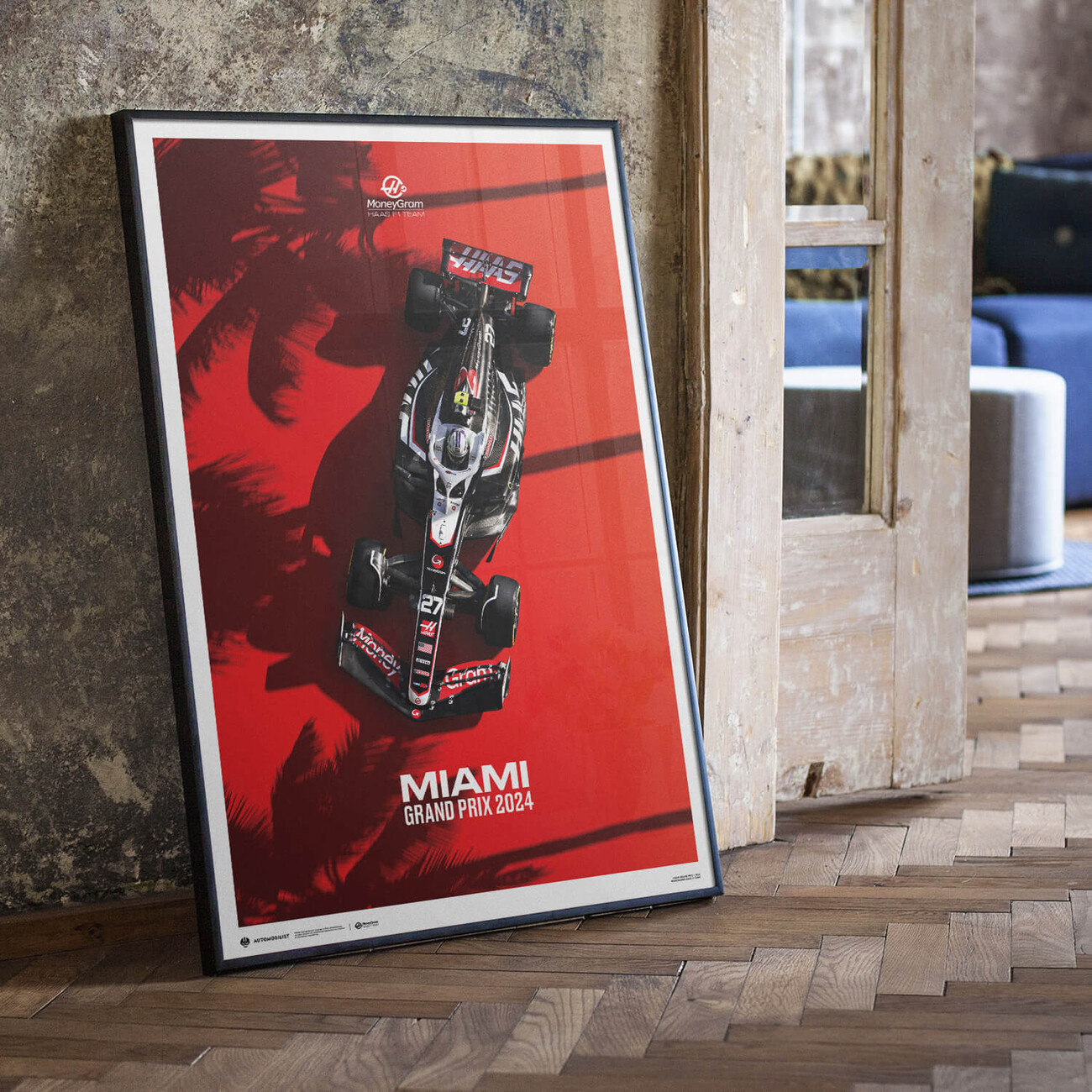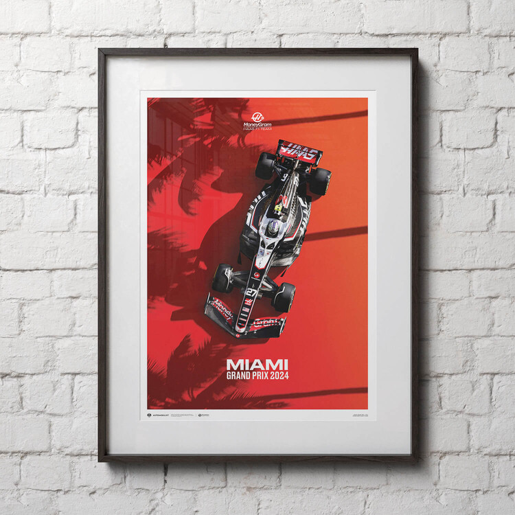 The excitement is building as MoneyGram Haas F1 Team gears up for their first 'home race' of the season! The Miami Grand Prix, now in its thrilling third iteration, continues to captivate fans with its electrifying energy and fast-paced action. Against the backdrop of America's growing love for Formula 1, the spotlight shines brighter than ever on the Sunshine State. With each passing year, the allure of F1 in the United States grows stronger, drawing enthusiasts from far and wide and for MoneyGram Haas F1 Team, led by drivers Nico Hulkenberg and Kevin Magnussen, representing the only American outfit on the grid, the stakes are even higher. Get ready to soak up the sun, feel the roar of the engines, and experience the unparalleled thrill of the Miami Grand Prix with our MoneyGram Haas F1 Team print!