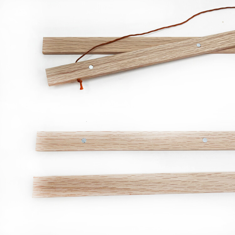 Het pakket bevat in totaal 4 stukken houten hangers - 2 bovenste en 2 onderste, waartussen de poster wordt bevestigd + aangehecht koord om de poster aan op te hangen.