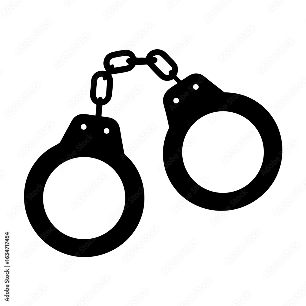 Sticker Black silhouette of handcuffs on a white background implying justice and securit