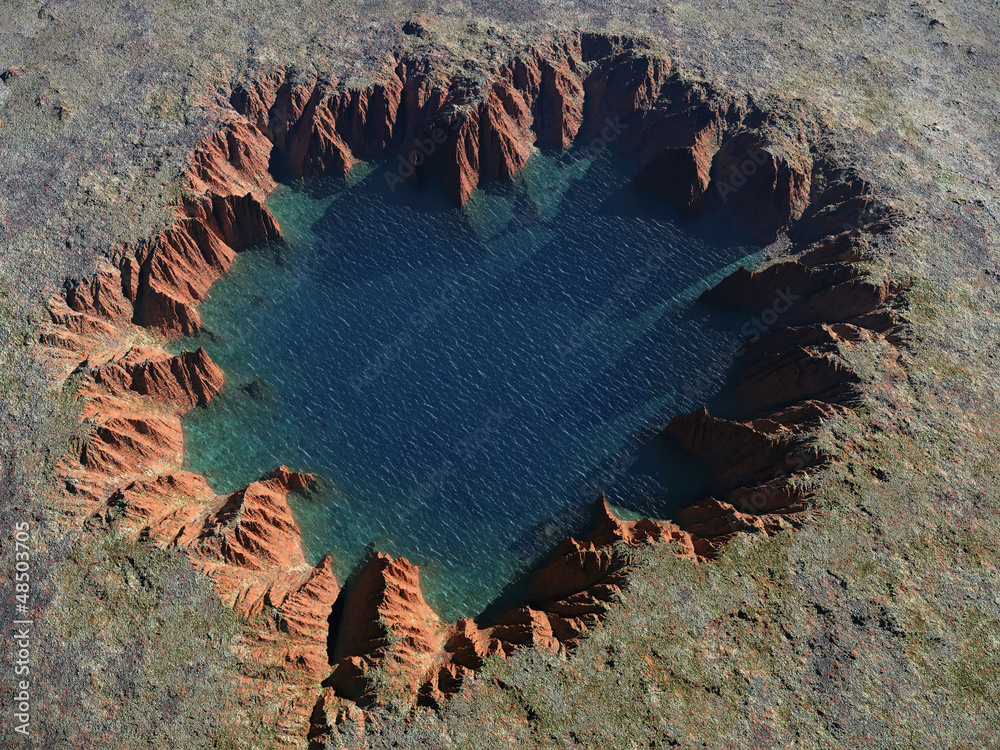 Sticker heart-shaped crater with a lake inside